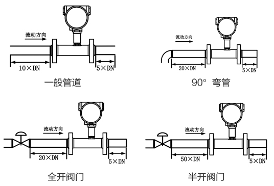 在任何情况下,管道完全必须充满液体,否则流量显示将会受到影响,导致测量误差。